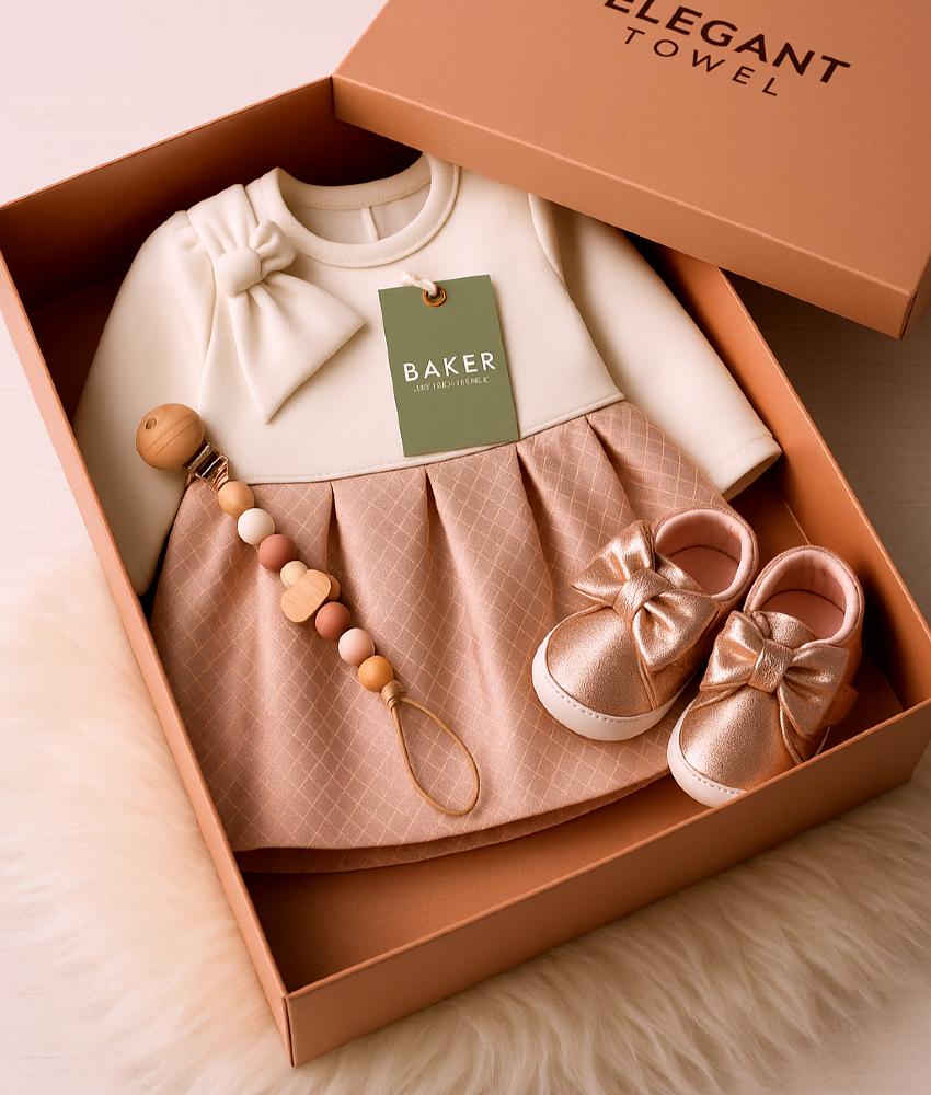 هدية تيد بيكر هذي هي الخيار المثالي لك. فستان بناتي تيد بيكر وردي وأبيض يضفي لمسة نعومة وأنوثة مع حذاء مريح يخلي صغيرتك تتحرك بحرية، وتعليقة لهاية خشبية آمنة تضمن سلامة المولود. كل قطعة فيها مصممة بعناية علشان تهديها لأغلى الناس بأجمل شكل.