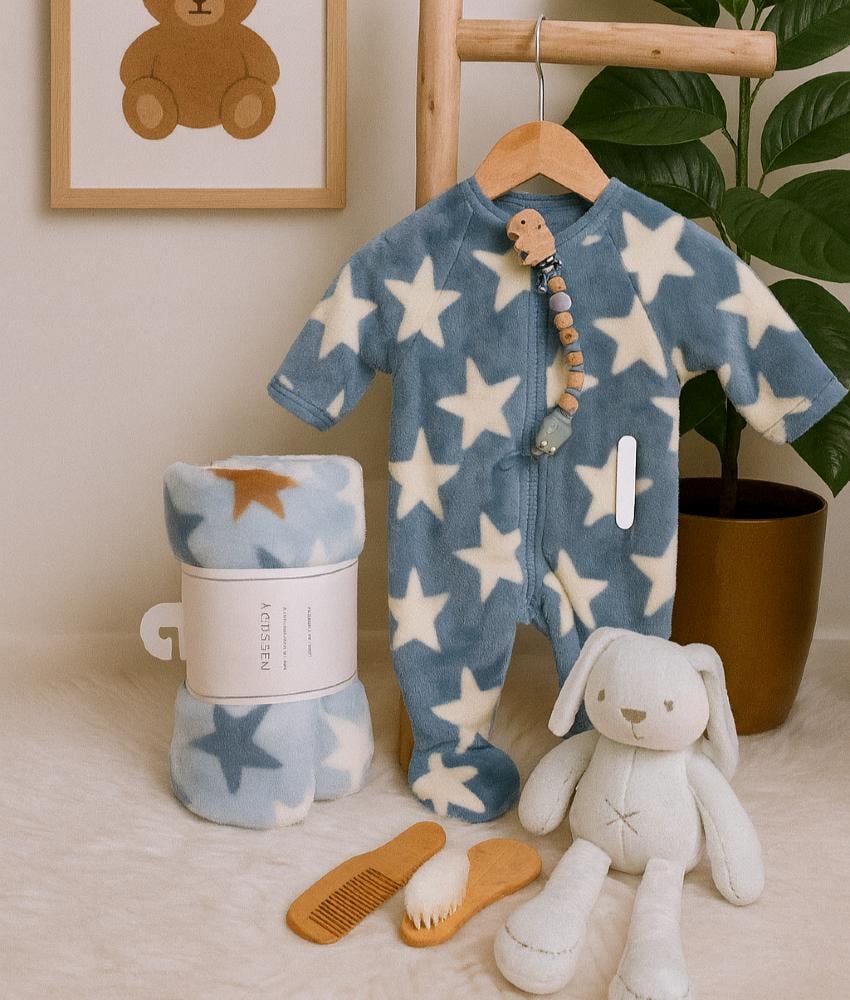 استقبلي مولودك الجديد بأجمل لحظات الدفء والحنان مع طقم مولود المصمم بعناية ليجمع بين النعومة والفخامة. صُنع من خامات مريحة وآمنة على بشرة الطفل الحساس...