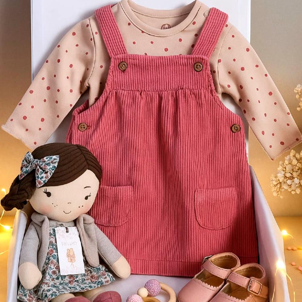 طقم ملابس اطفال مواليد من نكست مريح ويدفي بنتكم من أول يوم. البدلة المخمل حلوة وكشخة، ومعاها الشوز والهلاهوب يكملون اللوك. وفوق كل هذا فيه ألعاب تسليها. يعني طقم كامل ومريح ويخلي استقبال البنوتة أحلى، ما يحتاج تدورون شي ثاني.