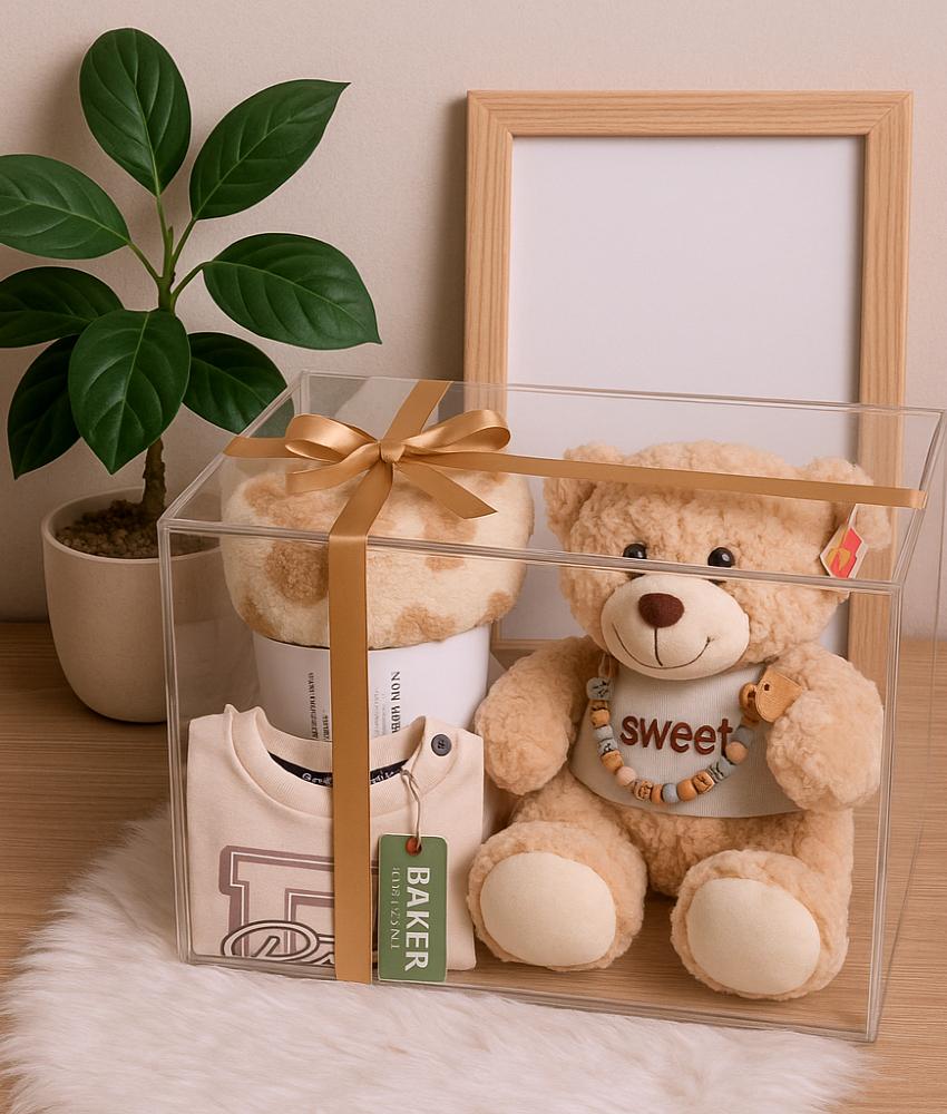 بوكس مواليد فاخر مصمم بعناية ليكون هدية لا تُنسى في أجمل اللحظات. يأتي الصندوق من الأكريليك الشفاف الفاخر ليُبرز جمال ترتيب الهدية، مزين بشريطة فاخرة ولمسات أنيقة تضيف له طابعًا راقيًا وفخمًا.