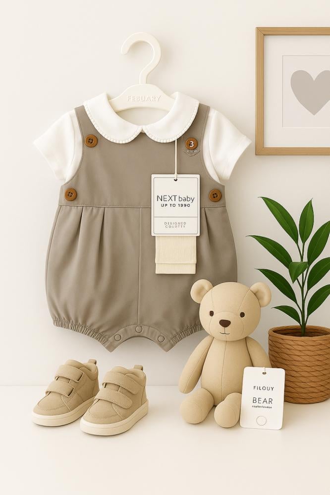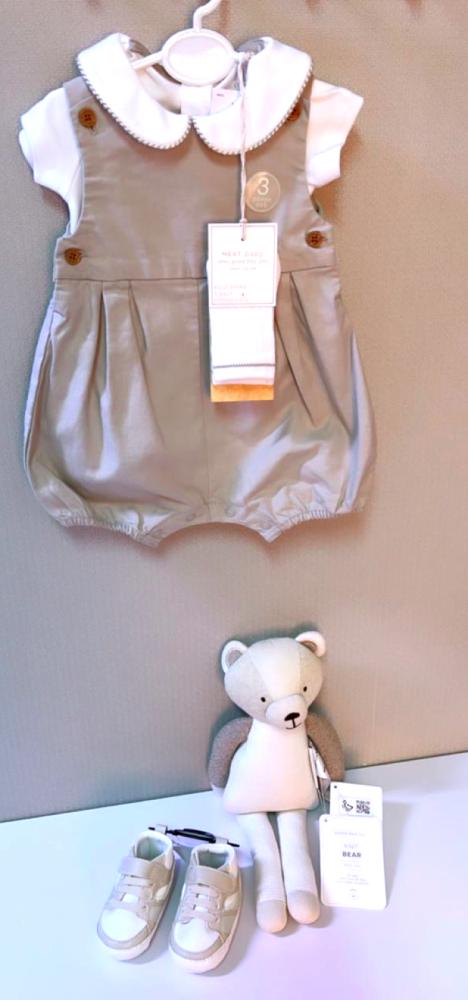 ملابس صيف اطفالي من نكست -بدلة من ٣ قطع : خامة روعة و مميزة - شوز رائع من نكست ، يعتبر اختيار مثالي للأقدام الصغار- لعبة رائعة من بوتري بارن...