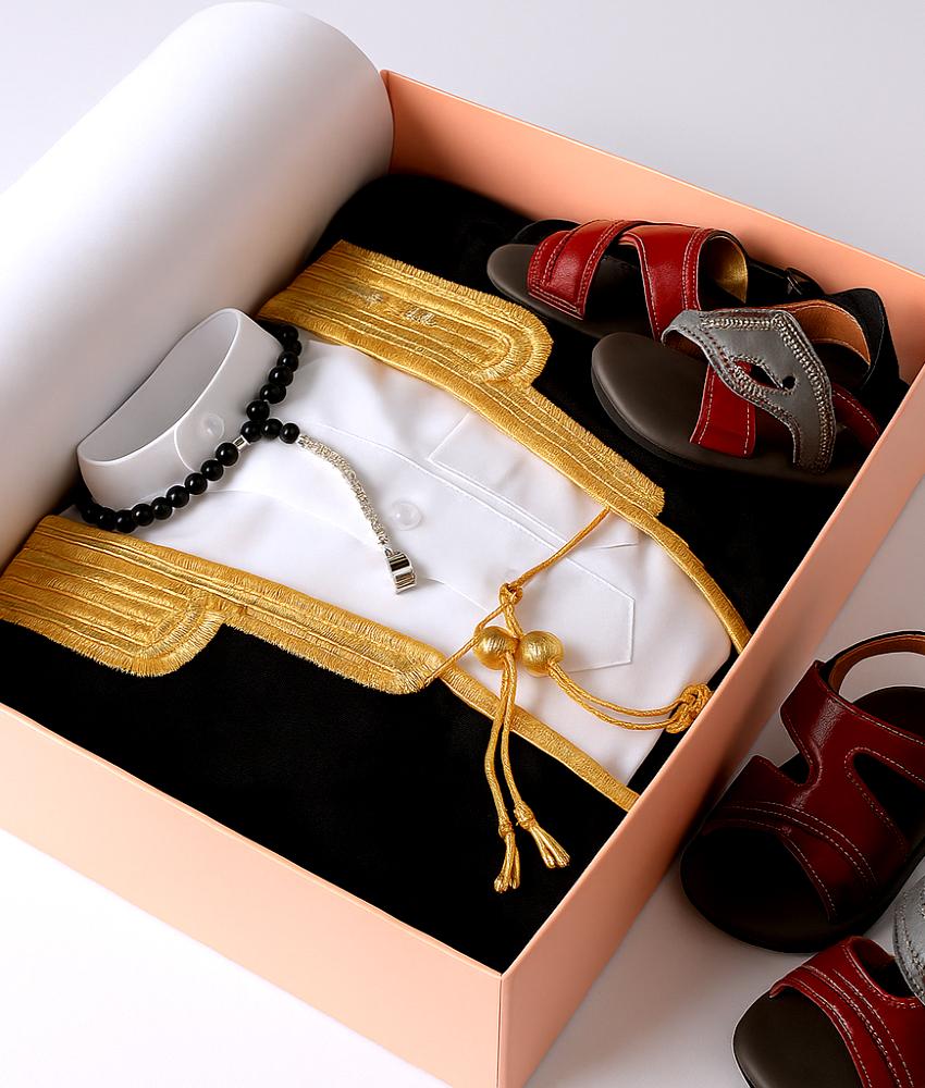 بشت مواليد يجمع بين الفخامة والرمزية ويكون هدية تظل ذكرى غالية لسنين. الطقم متكامل ويعكس اللمسة السعودية الأصيلة في كل قطعة ومصمم بعناية عشان يكون هدية تفرّح القلب وتليق بالمناسبة.